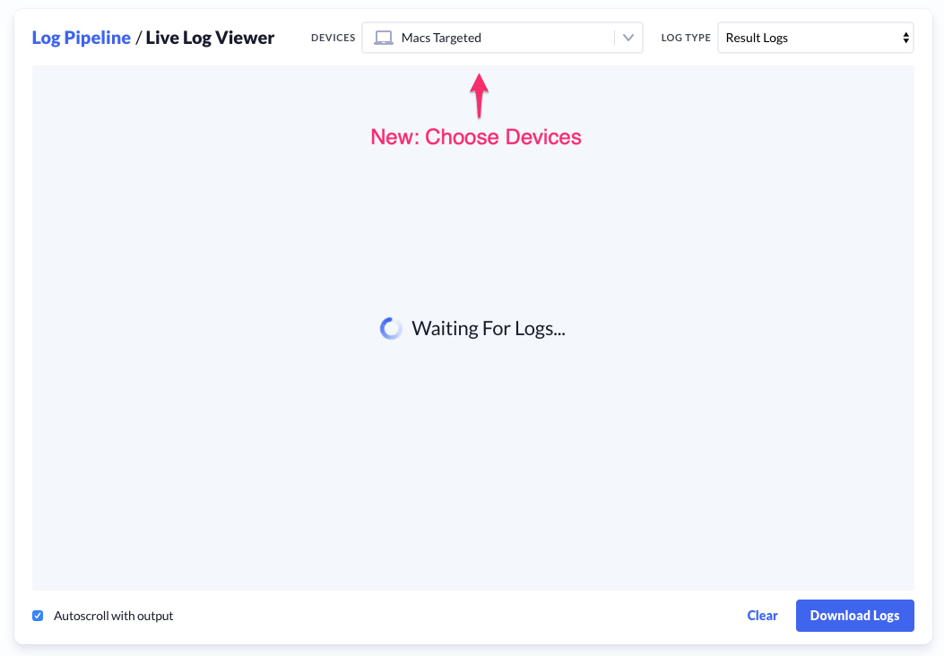 This viewer is useful for testing log output when you have a handful of devices enrolled, but becomes unwieldy quickly when you have many devices reporting logs at once.