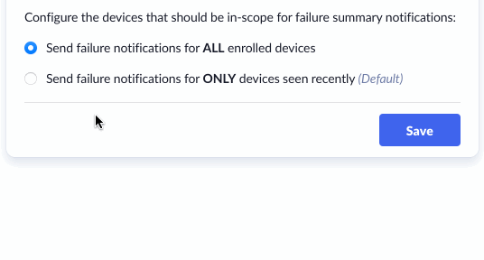 Additionally, it can be quite fatiguing to receive a notification for a device that has been sitting in a drawer for a few weeks. To help with that, we’ve introduced a new option that allows you to only notify users when the device has been seen recently. We’ve found this so helpful in practice that we set the default threshold to 7 days or less, but you can choose whatever makes sense for your team.