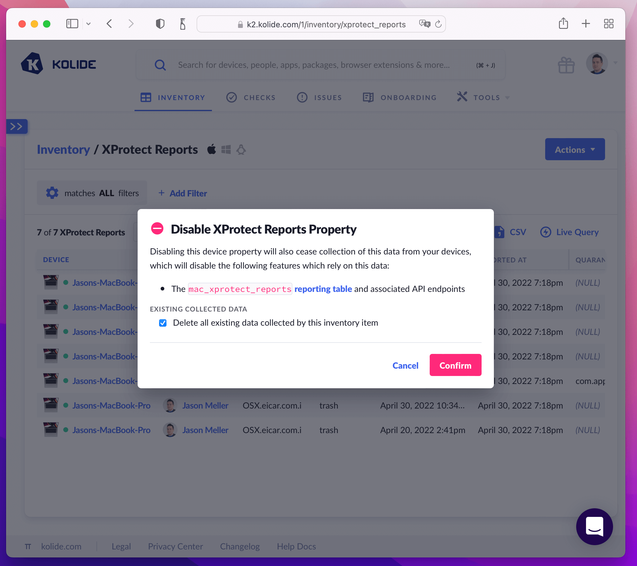 In addition to this visibility, Kolide can now collect the diagnostic reports XProtect emits when it blocks malware from executing.