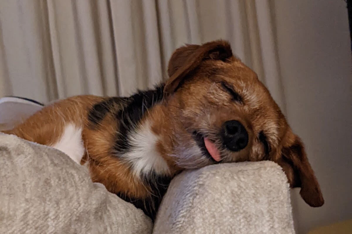 My oldest dog is Rambo, he’s an 8 year old yorkie poodle mix. You can often find him begging for cuddles during video calls or being a grumpy old man under my desk. I think the reference for his name is self explanatory, but I chose it because I liked the idea of naming a tiny, fluffy dog a very aggressive name.