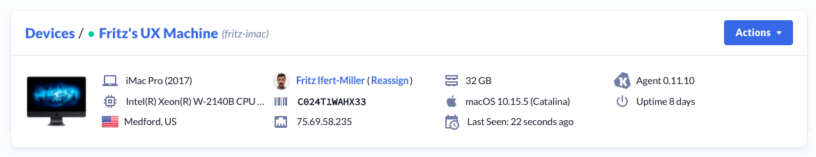 Now when you view a Device with a customized name, we will display its current hostname parenthetically next to it.