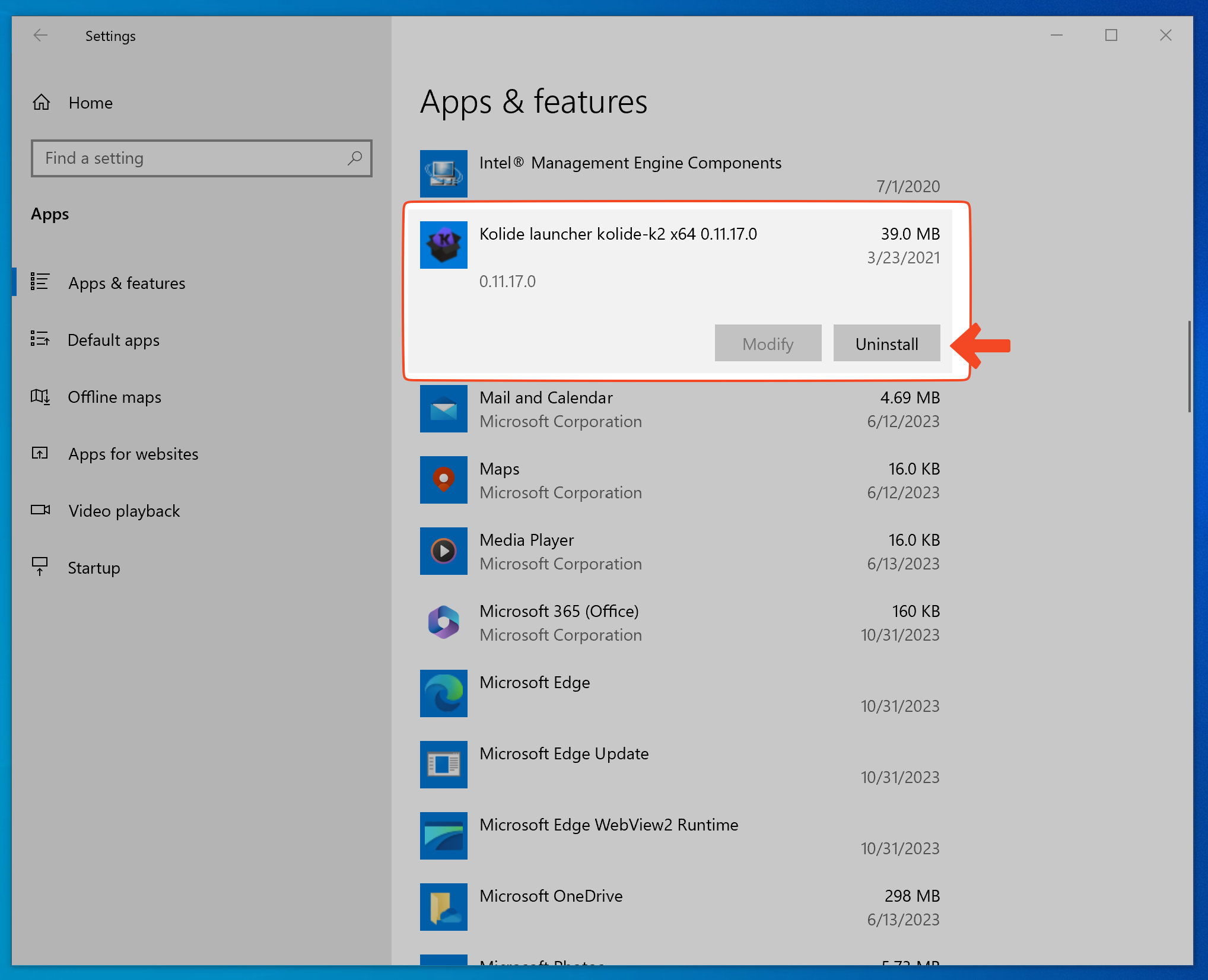 Select Start > Settings > Apps > Apps & features.
