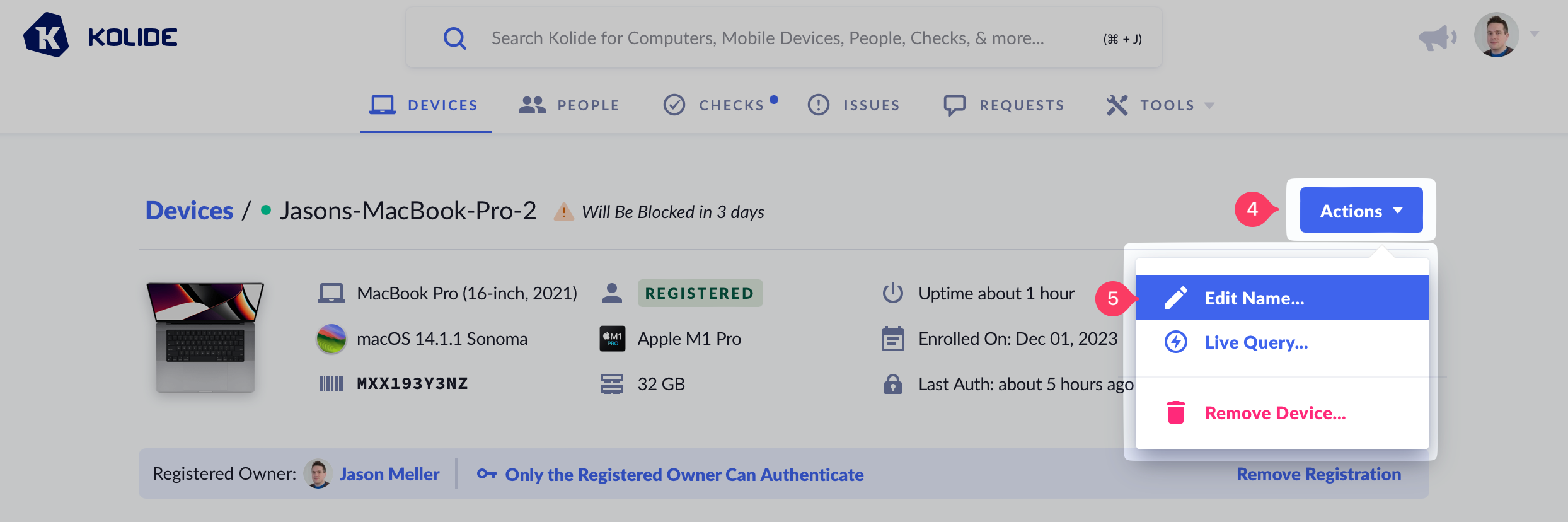 To change the name Kolide automatically assigns to a Device, follow these steps: