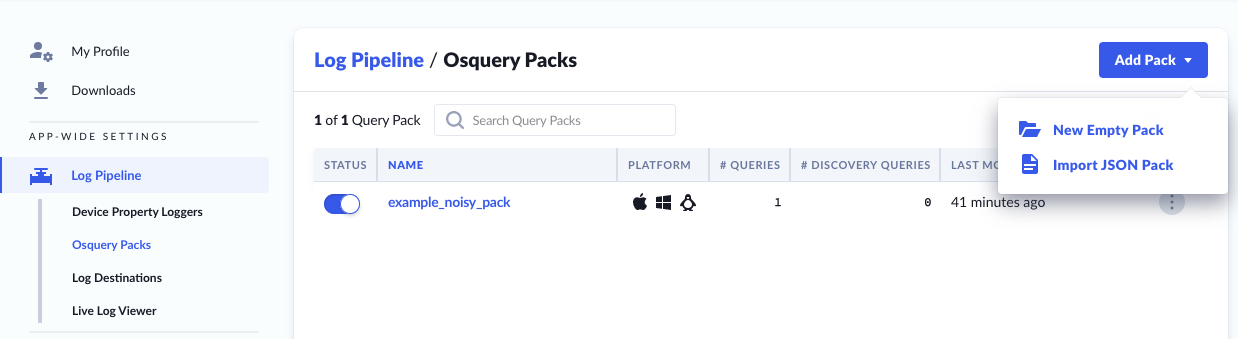 - Osquery Packs - Configure custom osquery Packs to extend data collection