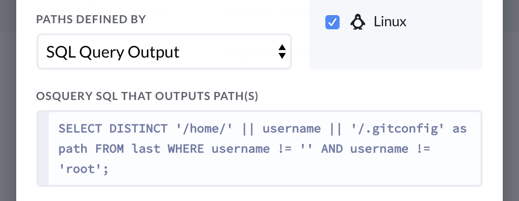 - File Integrity Monitoring Categories - Specify file paths to monitor using the osquery FIM