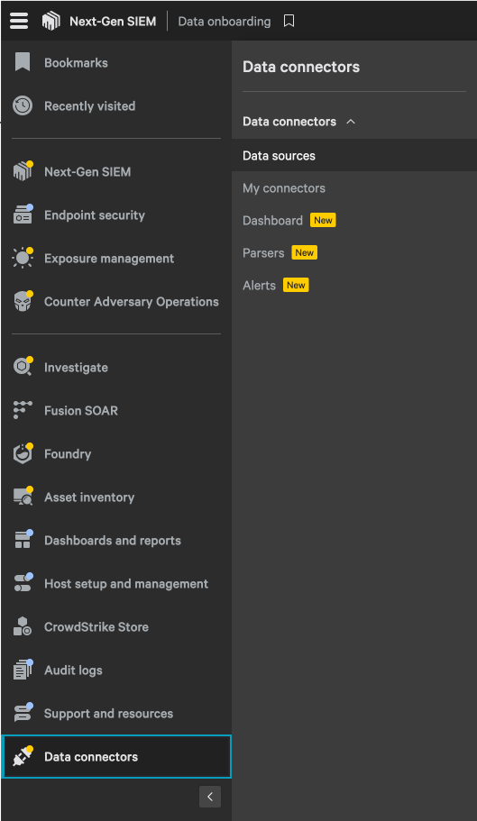 - Login to CrowdStrike and navigate to Data Sources