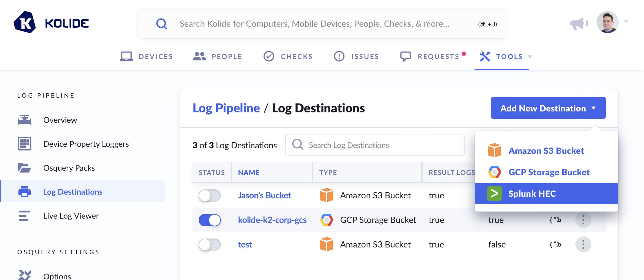 The Splunk HTTP Event Collector allows you to easily stream logs from Kolide directly into your Splunk instance in a format suitable for ingestion.