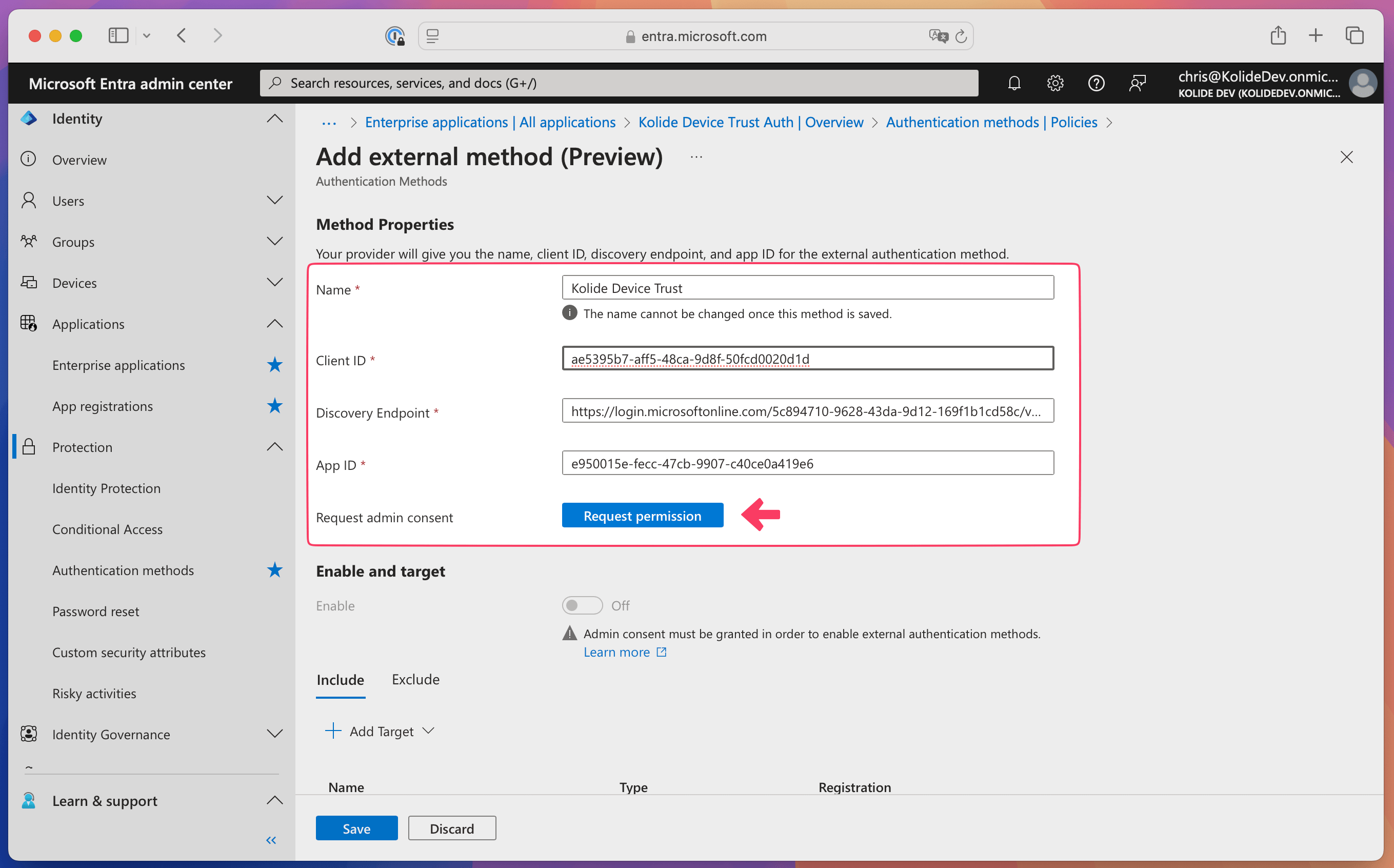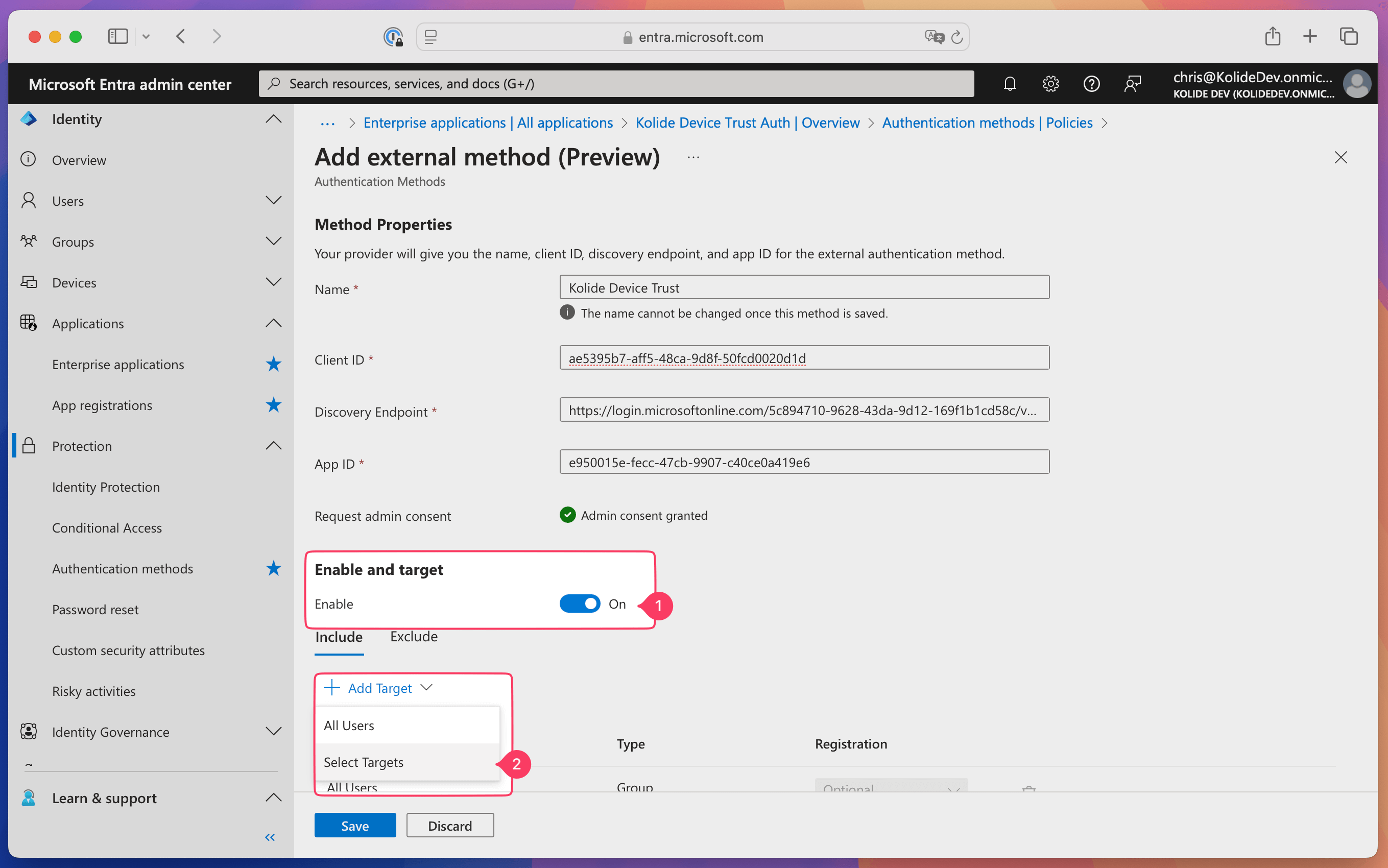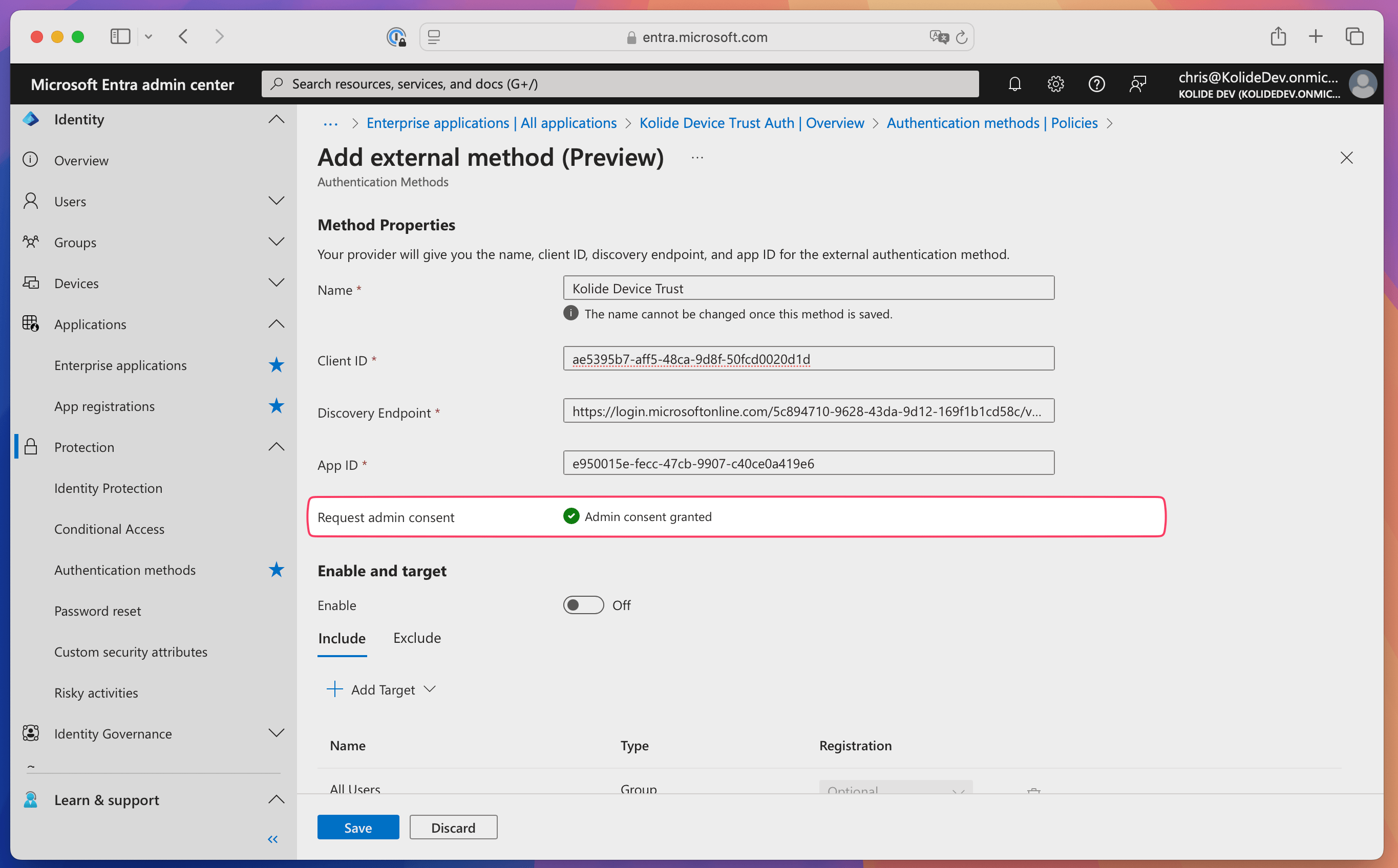 Step 1.2: Set up an App Registration and External Authentication Method for Kolide