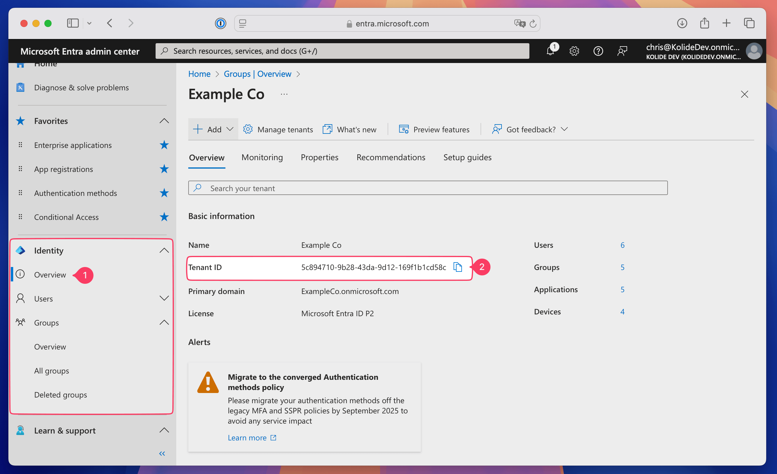 - In Entra ID, select Overview in the sidebar.