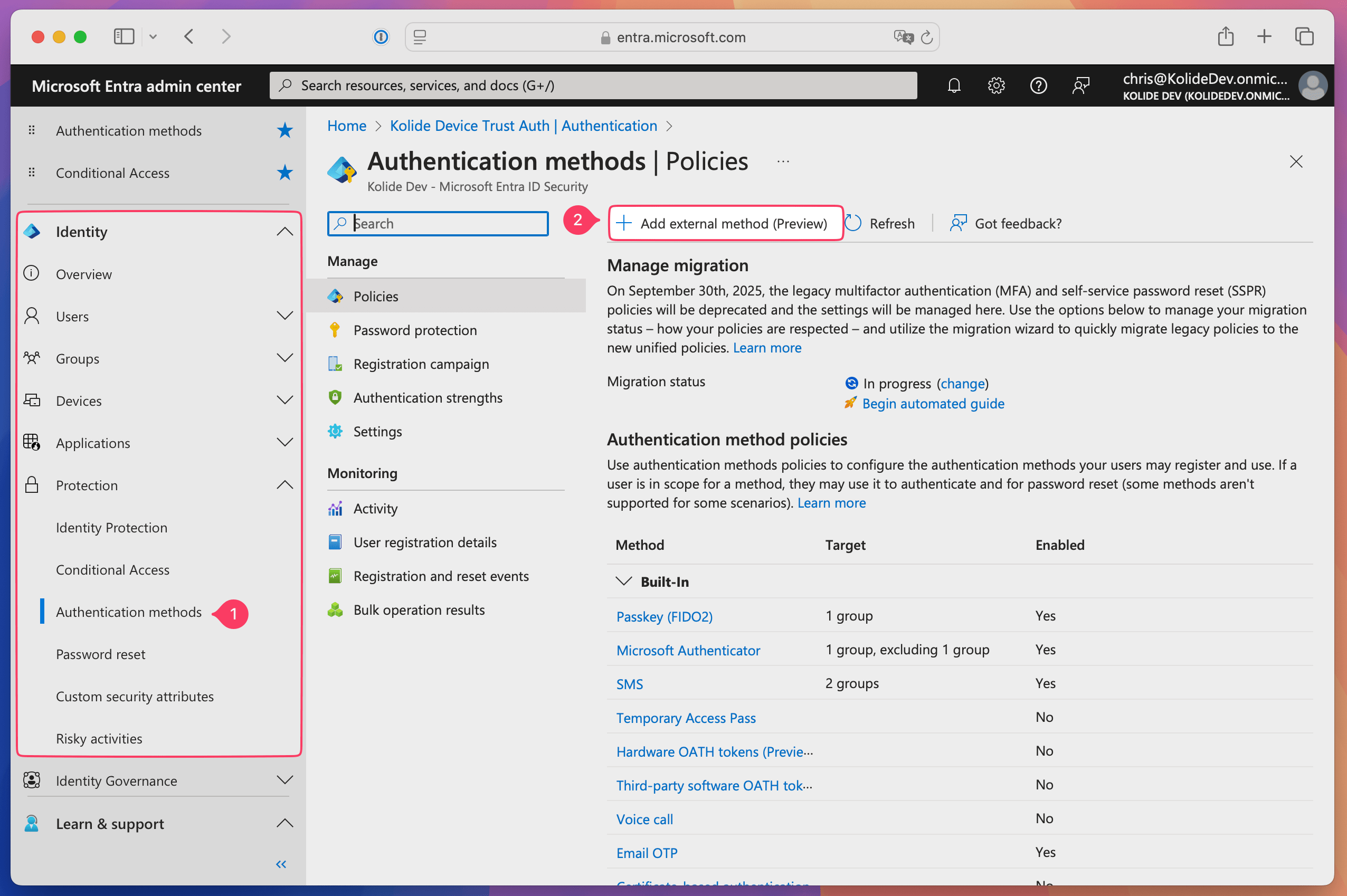 Add an external authentication method in Entra ID
