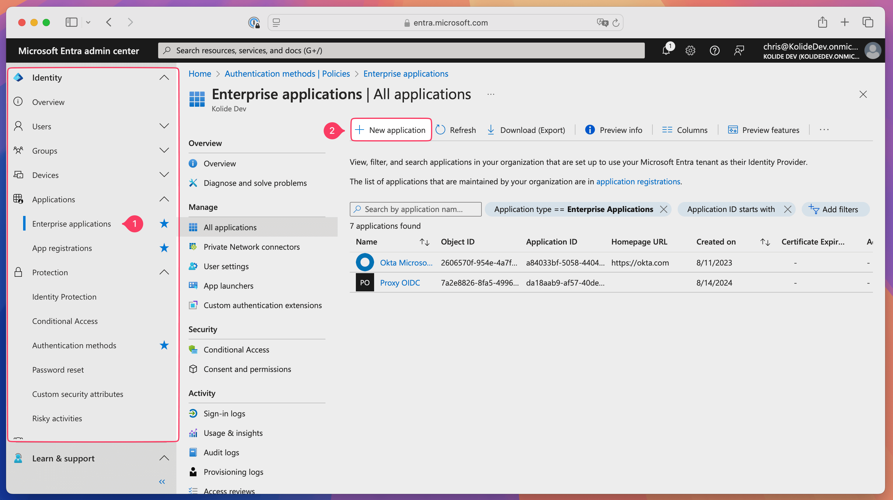 - In Entra ID, select Manage > Enterprise applications in the sidebar.