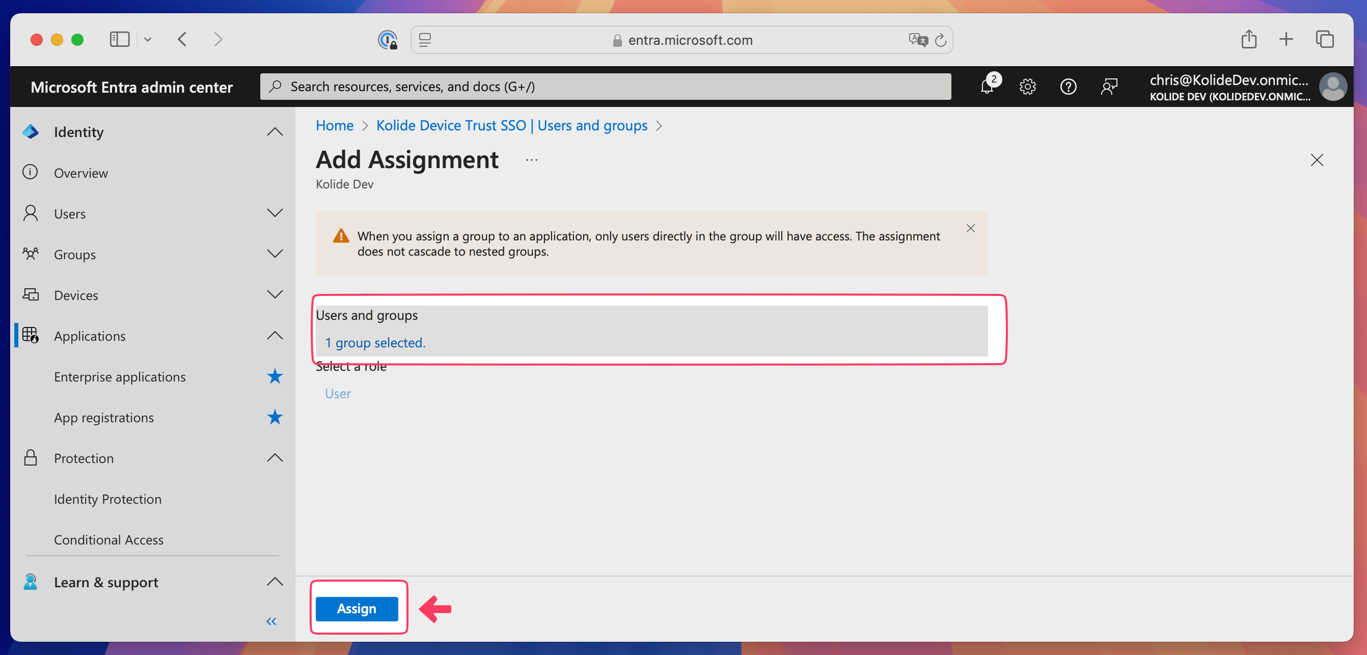 - Sign in as a user that belongs to your Kolide Enabled group.