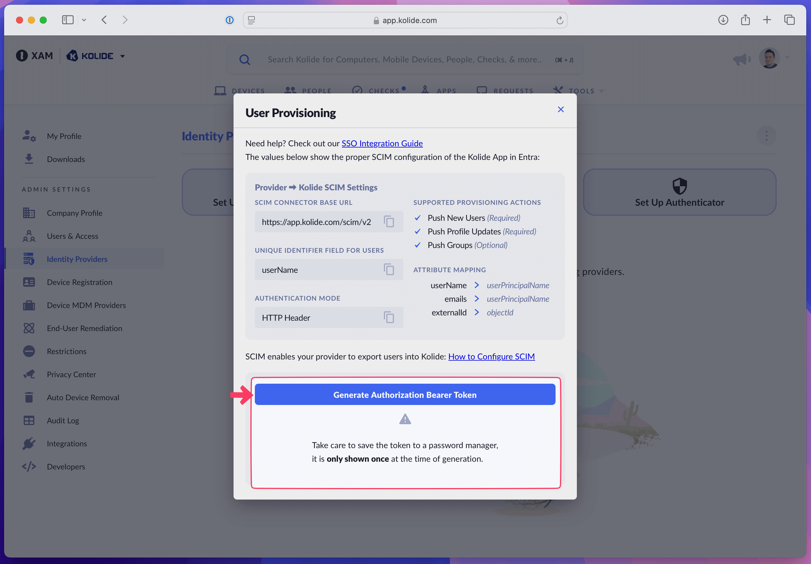 You can generate a new bearer token for SCIM provisioning at any time by following the instructions in Step 3.