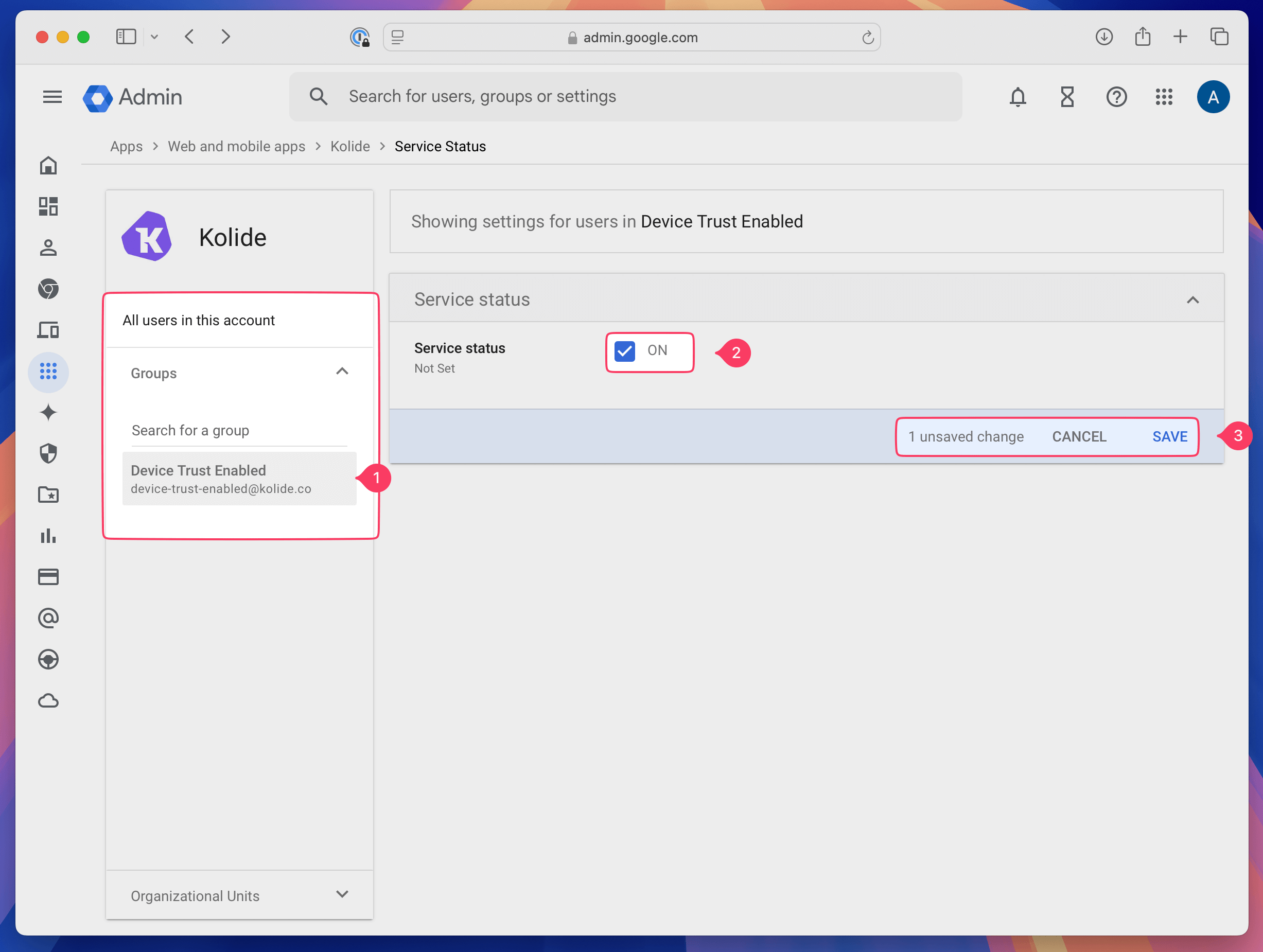 Step 2: Create a Kolide-enabled group in the Google Admin console for testing