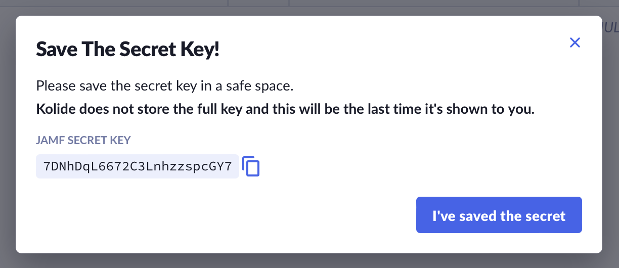 In Kolide’s case, this means you should see a form with a single field called “Management Secret”. Paste your secret key into this field and save.