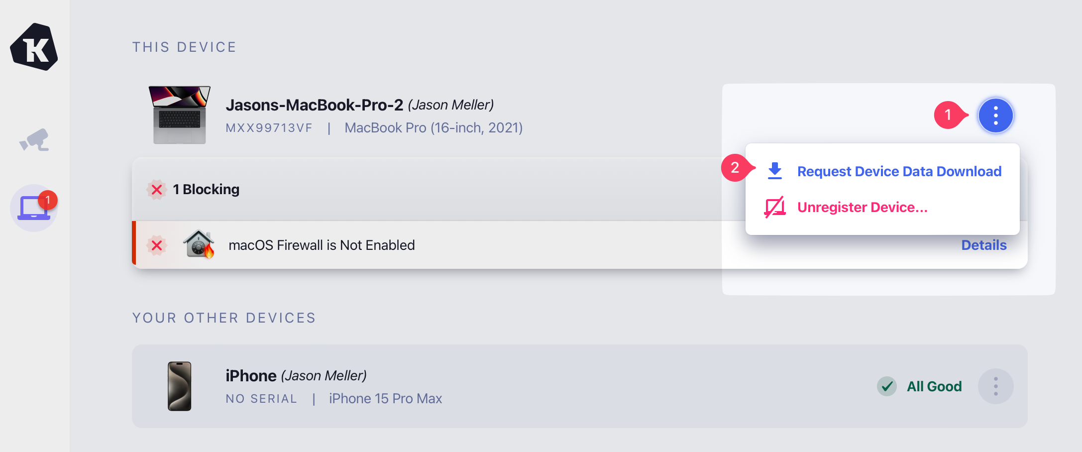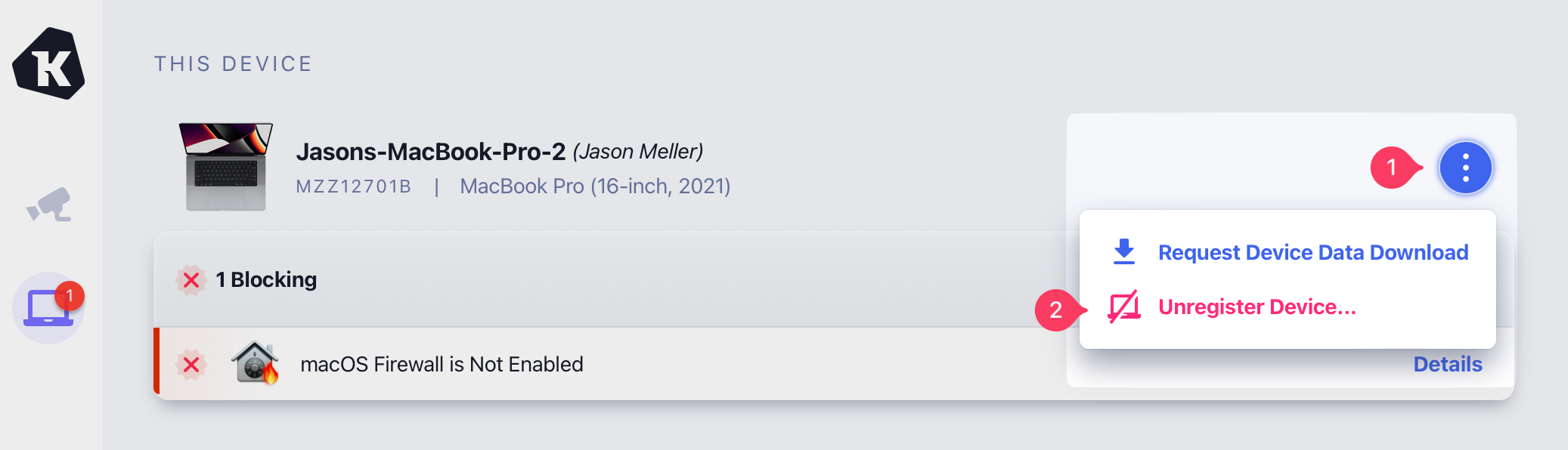 For security reasons, if you unregister all of your devices, you will not be able to register new devices without a Kolide administrator’s approval.