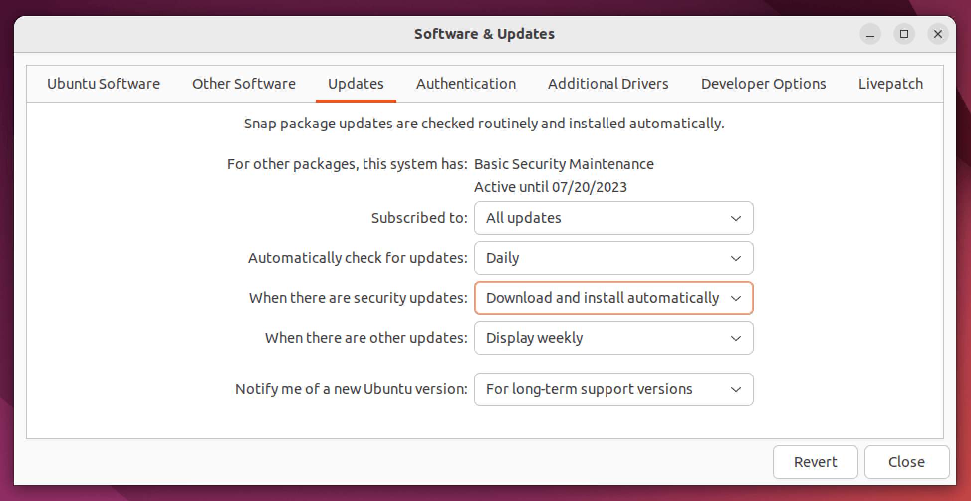 update-managerfrom the terminal).Once opened, select the Updates tab.